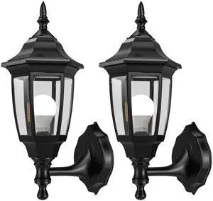 Plastic Outdoor Wall Light Fixtures with Bulbs, Waterproof and Anti-Corrosion Porch Sconces, Exterior Lanterns Wall Mount Lamp for Outside, Garage, Front Door, House, Patio, 2 Pack, Black