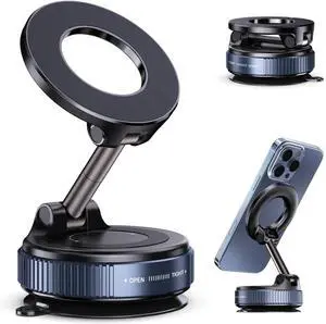 JOYROOM Magsafe Car Mount, Car Mount for iPhone with Strong Magnet, 360° Metal Strut Vacuum Suction Cup Phone Mount for iPhone 17 Air Pro Max/16 15 14 13 12 Series& Android Magsafe Case, Dark Blue