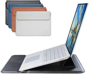 GANGANPRO Laptop Sleeve 13-14" Case with Stand Compatible with Microsoft Surface Laptop 5/4/3/2 13.5", MacBook Air/Pro 13.3", PU Leather Sleeve for 15-16" Laptop Computers - Black