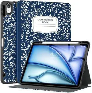 Supveco Case for iPad Air 11 Inch (M3 2025/M2 2024),iPad Air 5th/4th Generation 10.9 Inch 2022/2020 with Pencil Holder-[Auto Wake/Sleep],Premium Folio Stand Soft TPU Back Cover-Book Navy