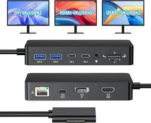 Surface Docking Station 12-in-1, Triple Display 4K@60Hz Dock with HDMI, DP, USB-C, 4-Screen Support, 4 USB Ports, SD/TF, Audio for Surface Pro 11/10/9/8/7, Surface Laptop, Book, Go