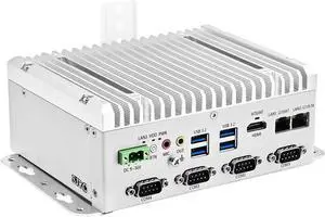 SJRC Fanless Mini PC Core i5-8265U, Industrial DIN Rail Mini Computer 4 COM RS232/RS485/422 Port, Dual Gigabit RJ45 LAN, Micro Desktop PC HD, NVMe, Linux, Barebone NO RAM NO SSD