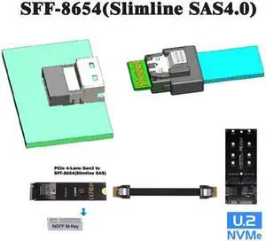 JVFYI PCI-E Slimline SAS 4.0 SFF-8654 4i 38pin Host to SFF-8654 Slim SAS Target Cable 40cm