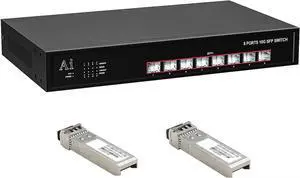 8 Port SFP+ Switch with 1 Pair 10G Module Transceiver, Unmanaged Switch with 8 x 10 Gigabit and 10GBASE LC SMF Single Mode SFP Module, Support 1G/2.5G/10G | Plug & Play