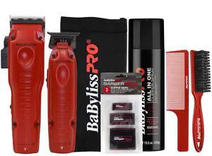 BaByliss Pro FXONE LO-PROFX Hair Clipper, Trimmer, Charging Base and Boosted Capacity Battery (Red) FX129MRPK Barber Essential Bundle