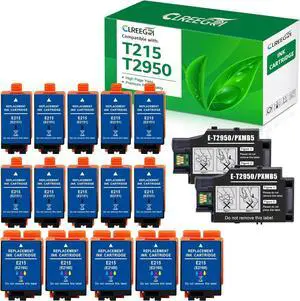 Ennovor Remanufactured T215 Ink Cartridge 215 Replacement for Workforce WF-100 WF-110 EC-110 WF 100 110 EC 110 Printer (10 Black, 5 Tri-Color, 2 T2950 Maintenance Box)