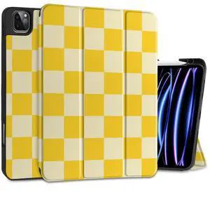 MEEgoodo Case for iPad Pro 12.9 Case M2 6th/5th/4th/3rd Generation 2022 2021 2020 2018, Protective Tablet Cover with Soft Back Shell for Kids, Yellow Squares