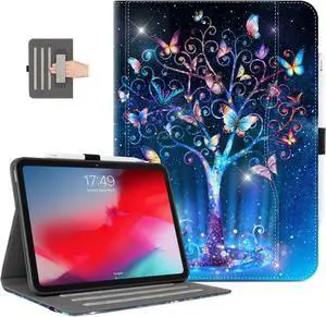 for iPad (A16) 11th Generation Case 2025, iPad 10th Generation Case Kids Men Women Shockproof with Pencil Holder Multi-Angle Adjustable StandView with Pocket/Hand Strap/Auto Wake Sleep, Butterfly Tree