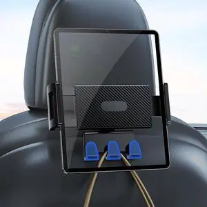 DICMKY Tesla iPad Tablet Mount Headrest Accessories for Model Y(Juniper) Model 3(Highland) 2026 2025 2024 2023 2022 2021, Back Seat Tablet Holder with Hooks for Kids, Fits 4.7-12.9" iPad Pro Air Mini