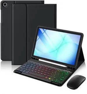 AnMengXinLing Keyboard Case for Galaxy Tab A11+ Plus/A9+ Plus 5G 11 Inch with Mouse, 7 Color Rainbow Backlight Magnetic Detachable Wireless Keyboard Mouse with S Pen Holder, Purple
