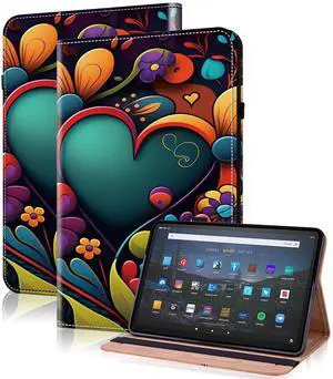Case for Kindle Fire HD 10 & 10 Plus Tablet (13th/11th Generation, 2023/2021 Release) 10.1" - PU Leather Flip Case with Elastic Band & Card Slots/Holder, Multi-Angle Stand Cover - Watercolor