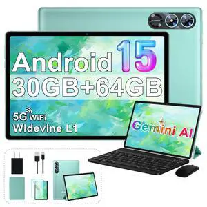 2026 Android 15 Tablet, 10 Inch Tablets with Gemini AI, 30GB+64GB+1TB Expand, 2-in-1 Octa-Core Electronics Tablets with Keyboard, Mouse, 5G WiFi, 6000mAh, GPS, Widevine L1, Split Screen - Turquoise