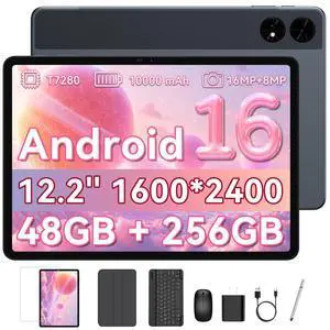 BESTTAB 2026 12 Inch Tablet, 48GB RAM+256 Storage(Expand to 2TB), Android 16 Tablet with Keyboard, T7280 Octa-Core, 2.5K 2400x1600 Display, 16MP Dual Camera, 10000mAh, 5G WiFi, 4 Year Warranty