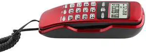 Corded Home Phone, Wall Mount Telephone, Extension Phone with Last Number Redial Function, for Hotel Family Use (Red Color)