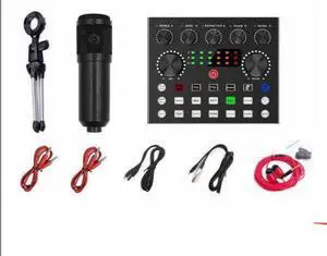 Mobile phone sound card live streaming microphone recording microphone set computer karaoke live streaming sound card set Plastic black BM800 + V8S sound card + small tripod stand