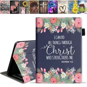 TBXOSTN Case for Kindle Fire HD 10 Tablet 10.1" (9th/7th Generation, 2019/2017 Release), Premium PU Leather Stand Cover with Smart Auto Wake, Blue Background Quote Bible Verse Phil 4:13