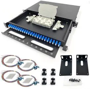 Duogalia LC-SM 24 Duplex 48 Port Rack Mount Enclosure Box with Splice Trays (Drawer Type Design, Includes 1.2 Meter Pigtail and 24pcs Coupler) Fits for 19" Racks Cabinet