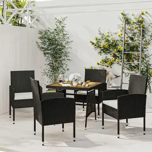 Costway 5 PCS Patio Rattan Furniture Set Wood Top Table Cushioned Chairs Garden Yard Deck