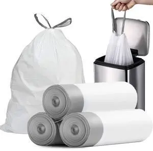 Small Trash Bags 4 Gallon - 57 Count Drawstring 4 Gallon Trash Bag, Pre-separated Small Garbage Bags Bathroom Trash Bags, Unscented White 4 Gal Trash Can Liners