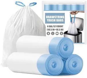 Small Trash Bags 4 Gallon - Drawstring 4 Gallon Trash Bag, Tear-Free 4 Gal Small Garbage Bags, Separated Unscented White Small Trash Bags Bathroom Trash Bags, 57 Count