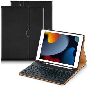 DTTO for iPad 9th/8th/7th Generation 10.2 Inch Case 2021/2020/2019 with Keyboard, 7 Colors Backlit Wireless Detachable Keyboard Premium Leather Folio Cover with Pencil Holder & Pocket, Black