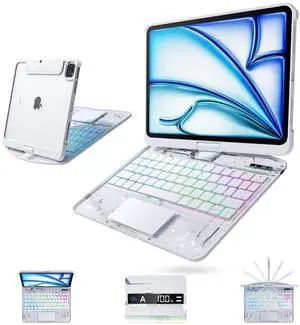 Tiaota Clear Wireless Keyboard Case for iPad Air 13 Inch (M3/M2, 2025/2024)/ iPad Pro 12.9" (6th/5th/4th/3rd Gen), 7-Color Backlit, Pencil Holder & Multi-Touch Trackpad, 360 Rotatable,White
