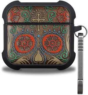 Patterit for AirPods 4 Case (2024) (USB-C), Shockproof Cover with Quick Released Keychain, Compatible with AirPods 4th Generation, Natural Wood Hand-Drawn (Crimson Bloom) Walnut