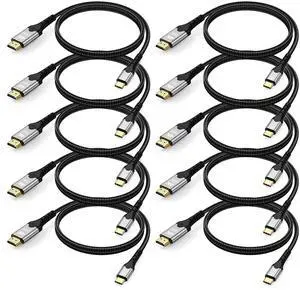 USB C to HDMI Cable 4K 10-Pack, Type-C to HDMI Cord 6ft, Slim USBC to HDMI Cable Male, Thunderbolt 3/4 for PC, Monitor, TV, Projector, Galaxy S8 to S23, iPhone 15/16, MacBook, iPad Pro, Dell XPS