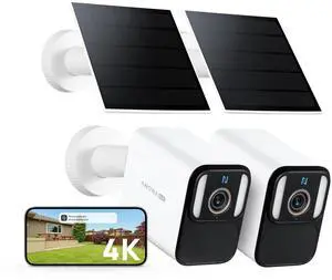 Anona 4K Solar Security Cameras Wireless Outdoor, Forever Power with Solar Panel, 8MP Color Night Vision, 24/7 AOV Recording, No Monthly Fees, AI Detection, Easy Setup, 2.4 G WiFi, IP67, 2 Pack