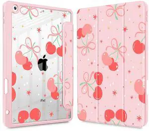 Tuiklol for iPad 10.2 case 2021 Gen 9th Release Built in Pencil Holder - Trifold Stand-Auto Wake/Sleep TPU Protection Stand Clear Back Cover for 2020 2019 [8th/7th] iPad 10.2 Case, Etro Cherry