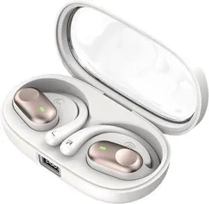 Earhook Headphones Wireless Bluetooth 5.4 Open Ear Earbuds with 60H Endurance + Noise Cancellation + Smart Translator Earphones, 360° Stereo Sound Earbuds with Earhooks for Workout Walking, Gold