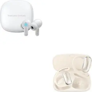 AI Translation Earbuds, 144 Language Translator Real Time,Noise Canceling Bluetooth Headphones,Bone Conduction Earbuds Translating Device for Travel, Business -White