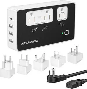 Key Power 2000W Step Down Converter, 220V to 110V Voltage Converter US to Europe, International Universal Travel Adapter with 3 AC Outlets and 4 USB(1 USB C) for Hair Dryer/Straightener.