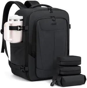 LOVEVOOK Travel Backpack for Men, 35L Carry on Backpack Flight Approved with 3 Packing Cubes, Large Personal Item Bag Fits 15.6 inch Laptop for Business Trip Weekender, Water Resistant Daypack, Black