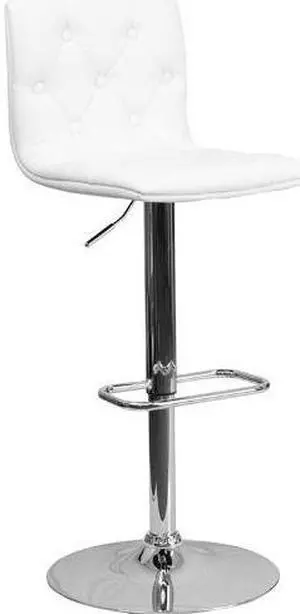 Contemporary Button Tufted White Vinyl Adjustable Height Barstool with Chrome Base