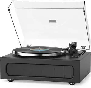 Record Player All-in-One Classic Turntable for Vinyls Records Built-in 4 Stereo Speakers High Fidelity Audio AT-3600L Phono Belt Drive Vinyl Players BT Wireless Pariing Aux-in RCA Auto Stop Pure Black