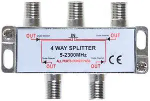 4 Way Bi-Directional 5-2300 MHz Indoor and Outdoor Waterproof Coaxial Antenna Splitter for RG6 RG59 Coax Cable Satellite HDTV (4 Ports)