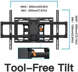 MountFTV Full Motion TV Wall Mount Bracket with Tool-Free Tilt for 42-90 Inch TVs, 6 Articulating Arms Heavy Duty TV Wall Mount, Holds up to 132 lbs, Max 600x400mm, Fits 12/16 Wood Studs