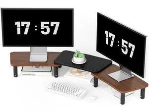 Dual Monitor Stand Riser, Wood and Steel Multi-Purpose Desktop Storage Stand for 2 Monitors for Computer, Laptop, Printer, TV, Rustic Brown- Brand: Poly