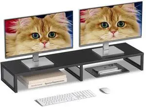 NestNeat Dual Monitor Stand - 39 inchs Wood Monitor Stand Riser for 2 Monitor/Laptop Computer/TV/PC/Printers for Office