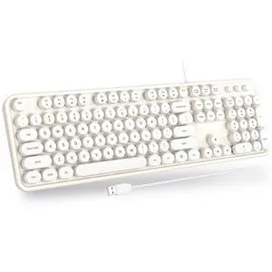 Wireless Keyboard Set, Retro Typewriter Design, Mechanical Key Feel, Plug and Play, 104 Key Layout, Durable Build for Gaming, Office, Home Use, Programming, Creative Writing, Daily Typing