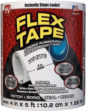 Flex Tape Rubberized Waterproof Tape, 4" x 5' (10.2cm x 1.52m), White