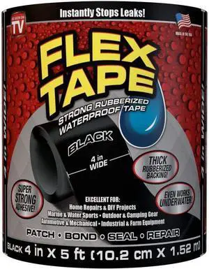 Flex Tape Rubberized Waterproof Tape, 4" x 5' (10.2cm x 1.52m), Black