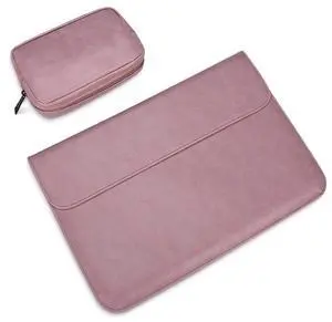 PU01S PU Leather Horizontal Invisible Magnetic Buckle Laptop Inner Bag for 14.1 inch laptops, with Small Bag (Pink)