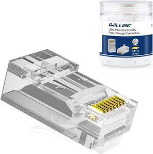 100-Pack RJ45 Cat6 Pass-Through Connectors, Gold-Plated Ethernet Crimp Plugs for Solid and Stranded Wire, UTP Network Cable Termination