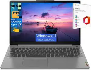 Lenovo IdeaPad 3 15 Laptop, 15.6" FHD Touchscreen, Intel Core i7-1255U 10-core Processor, Intel Iris Xe Graphics, 40GB DDR4  2TB PCIe SSD, Wi-Fi 6, Windows 11 Pro,Office 2024 License