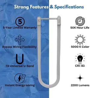 Ushio 3000733 Ubiquity LED T8 Universal U-Bend 24in 13W 5000K G13 Medium BiPin Type A Ballast Compatible or Type B Bypass 120-277V