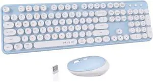 UBOTIE Dual Mode Colorful Wireless Keyboard, Bluetooth and USB Receiver Retro Typewriter Round Keycaps Keyboard Support Multi Devices for PC Laptop Tablet Phones(Blue Colorful)