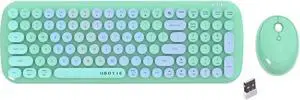 UBOTIE Colorful Computer Wireless Keyboard Mouse Combos, Typewriter Flexible Keys Office Full-Sized Keyboard, 2.4GHz Dropout-Free Connection and Optical Mouse (Green-White)