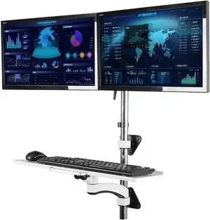 VIVO White Clamp-on Height Adjustable Keyboard and Mouse Under Desk Slider Tray